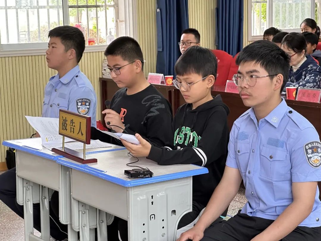 “我宣布,现在开庭!”随着小法官手里的法槌落下,一场沉浸式“模拟法庭”活动正式开演。来自陈店乡初级中学的12名学生,分别扮演审判长、审判员、被告人等角色,模拟审理了一起因打架斗殴导致故意伤害罪的案件。他们精彩的表演,将真实的庭审现场呈现出来,让前来观摩的老师和同学近距离感受了司法的神圣和威严。