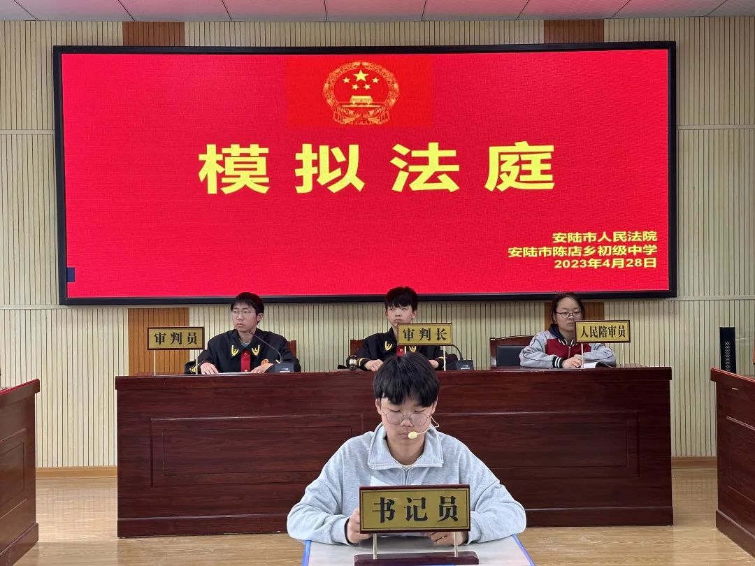 为进一步增强青少年的法治观念,激发青少年知法、学法、守法、用法热情,4月28日,安陆法院共青团走进陈店乡初级中学开展了一场别开生面的“模拟法庭进校园”活动。团市委、市关工委、市法院、陈店乡中心学校、陈店乡初级中学等单位及部门领导出席本次活动。