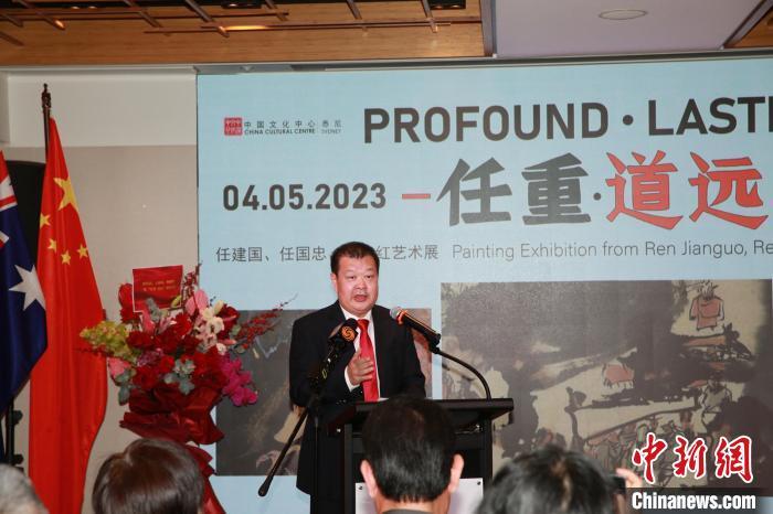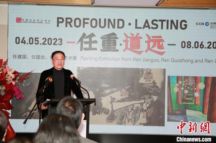 中新网悉尼5月5日电(顾时宏 罗文俊)由悉尼中国文化中心和中国建设银行悉尼分行共同举办的“任重·道远——任建国、任国忠、任立红艺术展”4日晚在悉尼中国文化中心隆重开幕。