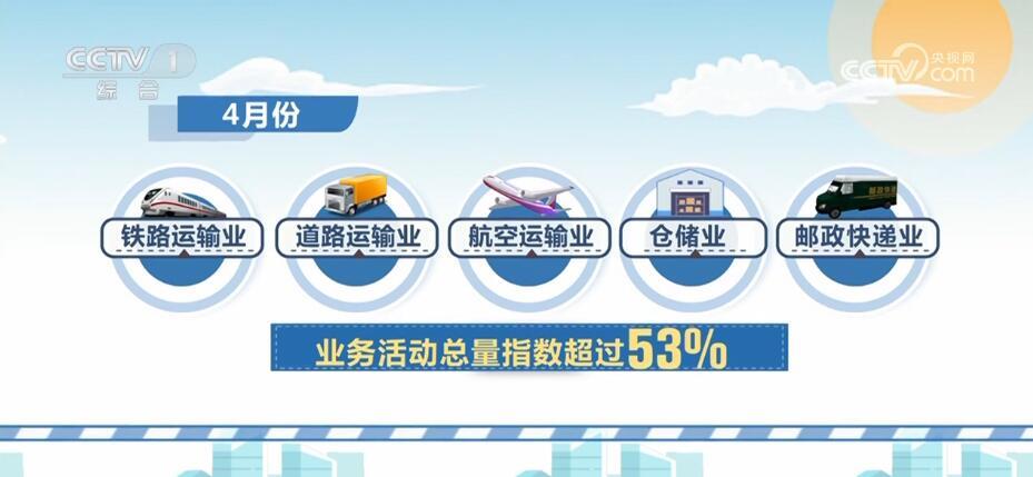 中国物流与采购联合会5月4日公布,4月份中国物流业景气指数为53.8%,继续保持在扩张区间。部分行业的业务活动总量指数,保持在50%以上扩张区间。其中,铁路运输业、道路运输业、航空运输业、仓储业和邮政快递业超过53%。