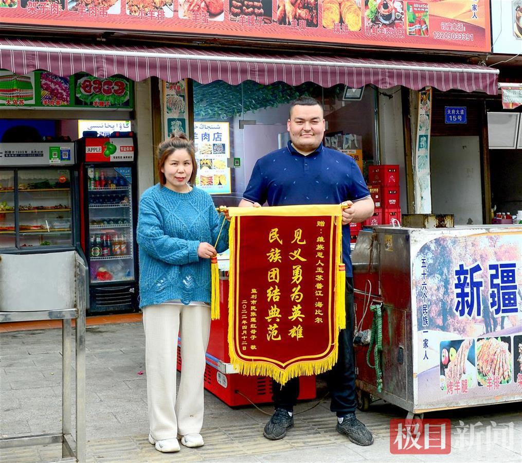 被救的一名小男孩母亲张莲红还在监利全城寻找救命恩人。去年4月14日,张莲红将一面印着“见义勇为英雄 民族团结典范”的锦旗送到玉苏普江所在的烧烤摊,表达对救人英雄的敬意。