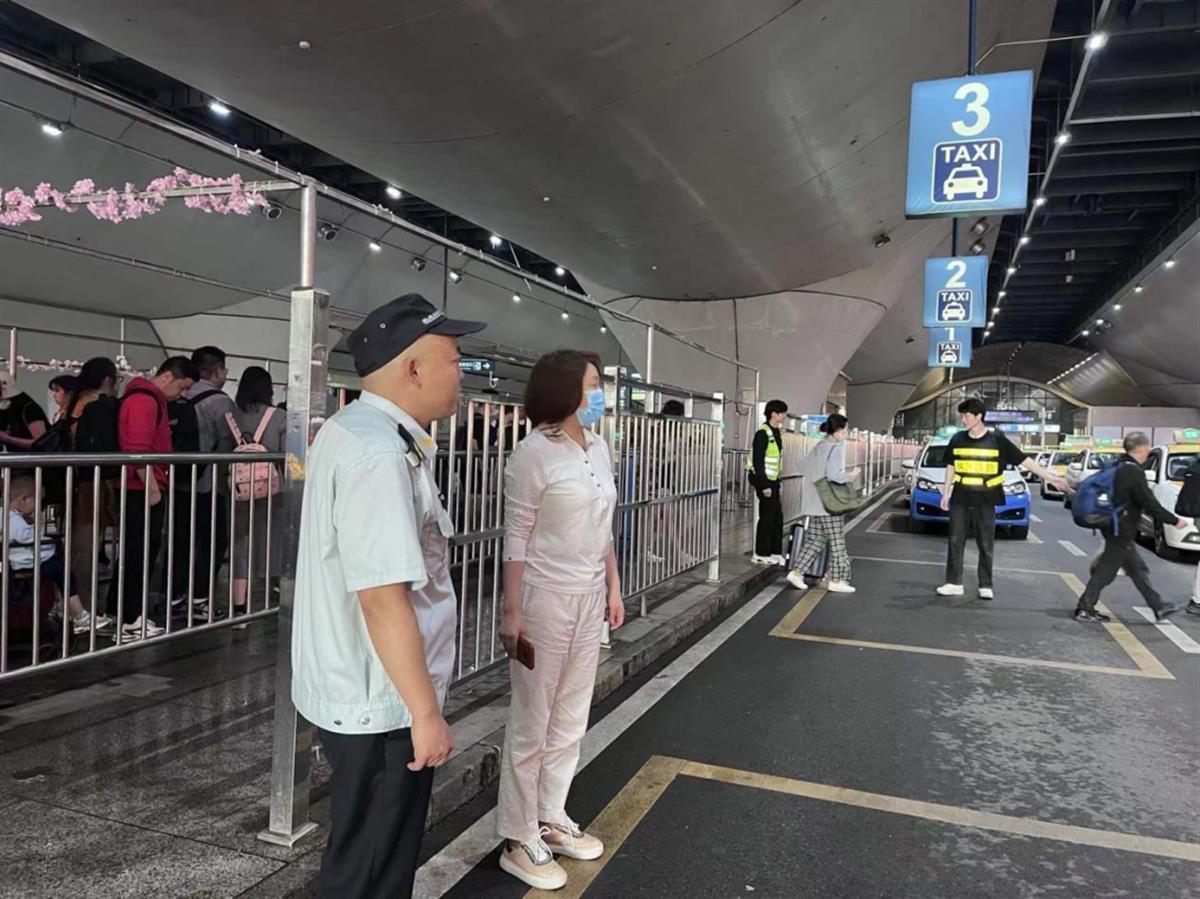 针对返程客流高峰,地铁4号线加开23:15以及23:30两趟车,全线停靠;站区办启用出租车站点备用候乘处,设置一米线伸缩带,引导旅客排队乘车;出租车上车口全部开放,工作人员定点值守,疏导旅客,提高出站效率。