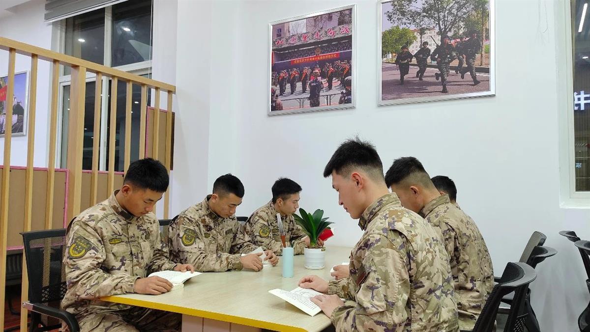 该支队积极开展“书香浸润心灵,读书引领成长”系列读书活动,组织线上和线下贯通、领学和自学相宜、朗读与分享结合的“日周月季”理论学习,通过读原文、看原著、悟原理,帮助官兵感悟知识的力量。