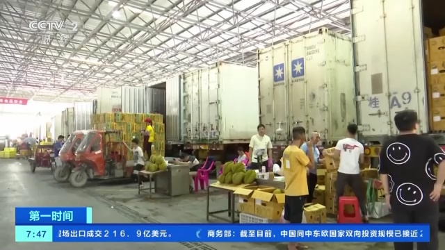 记者在广西南宁市海吉星水果批发市场看到,从事榴莲批发生意的商户们正忙个不停。