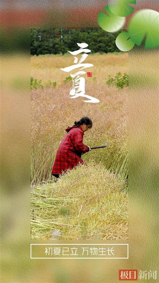 立夏节气,江汉平原腹地的湖北省江陵县,田间满是油菜成熟的味道,农民抓紧时间,抢在雨前收割菜籽。立夏后,雨水丰沛。夏季的果实在雨水的浇灌下茁壮成长。