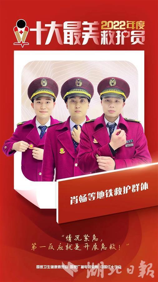 湖北日报讯 (记者成熔兴、通讯员李丹、产启斗)5月8日,第76个世界红十字日,国家卫生健康委员会、国家广播电视总局和中国红十字会总会联合公布了2022年度“十大最美救护员”名单,武汉地铁肖畅、夏阳、徐聪“地铁救护群体”获评“十大最美救护员”称号,成为湖北省唯一获评团队。