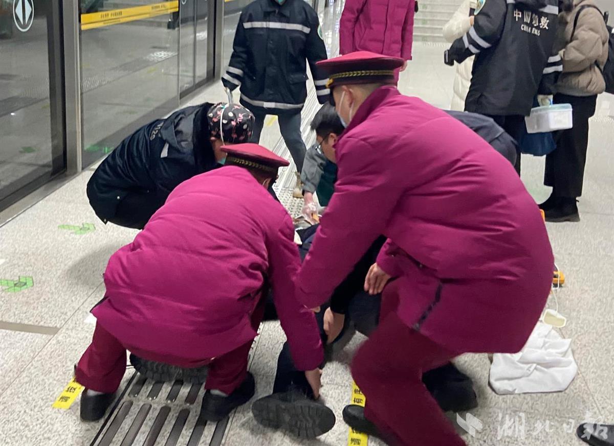 2023年1月14日8时44分,武汉地铁11号线列车内,一乘客突然发病倒地。司机王彦接到乘客报告后,第一时间联动行车调度员、下一站长岭山站。当班值班站长肖畅立即联动站内相关人员快速赶至现场,抬发病乘客下车、取来站内AED、实施胸外按压、接应120救护人员……所有人员临危不乱、分工明确。值班站长肖畅、夏阳和客运值班员徐聪持续十多分钟的急救,历经三次除颤,成功让乘客脉搏再次跳动。事后,患者家属送来锦旗,激动地说:“正是那短短数分钟时间的及时、正确救护,挽救了家人的生命,拯救了一个完整的家庭。”