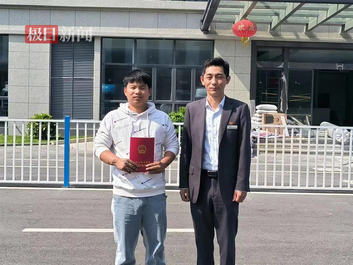 工作人员将不动产登记证送到郑先生手中