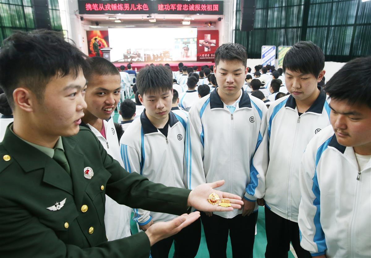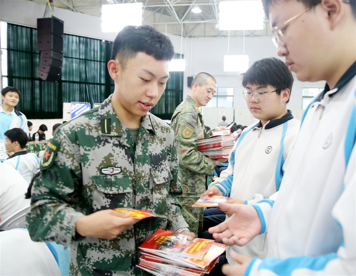 近日,在武汉市财贸学校,武汉市江岸区人武部干部进校进行主题为“我以青春固国防报效祖国”今年秋季征兵宣传登记,鼓励青年学子携笔从戎,踊跃参军报效祖国。