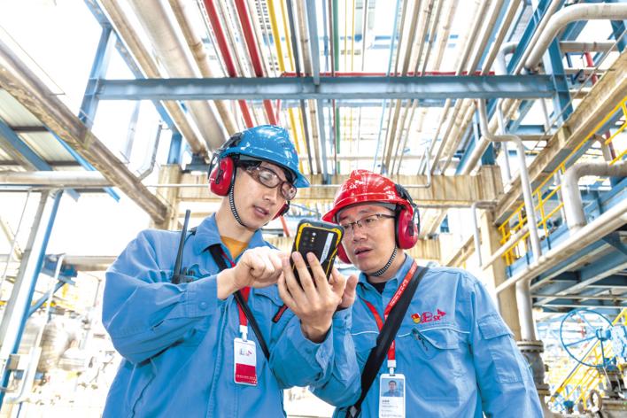 5月8日,中韩石化员工手持5G智能巡检仪进行安全生产巡查。近日,中韩石化5G智能工厂项目入选工信部《2022年工业互联网试点示范名单》,成为全国33家5G全连接工厂中的一员。 (湖北日报全媒记者 柯皓 通讯员 付松 梁发强 摄)