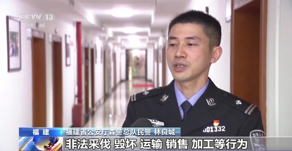 福建省公安厅森警总队民警 林良城:非法采伐、毁坏、运输、销售、加工等行为,将可能构成危害国家重点保护植物罪。请广大人民群众要严格遵守法律规定,如发现有上述行为,请向公安机关进行举报。