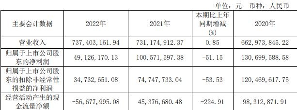 据神马电力2022年年报,报告期内,公司实现营业收入7.37亿元,同比增长0.85%;实现归属于上市公司股东的净利润4912.62万元,同比下降51.15%;实现归属于上市公司股东的扣除非经常性损益的净利润3473.27万元,同比下降53.53%;经营活动产生的现金流量净额-5667.80万元,同比减少224.91%。