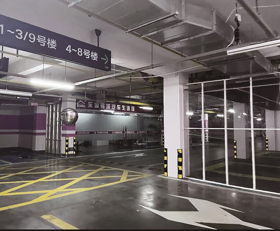 5月8日上午9点半左右,记者来到中建东湖锦城小区,在业主们的指引下,记者在负二层的地下车库里看到了已经建好的洗车房,洗车房分为两大区域,等候区和冲洗区,占地面积为7个车位大小。