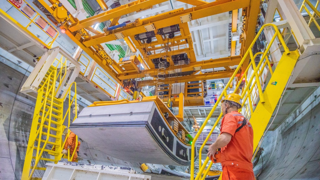 图为北京城市副中心东六环入地改造工程西线隧道施工现场,“京华号”盾构机正在掘进。新华社记者樊曦 摄