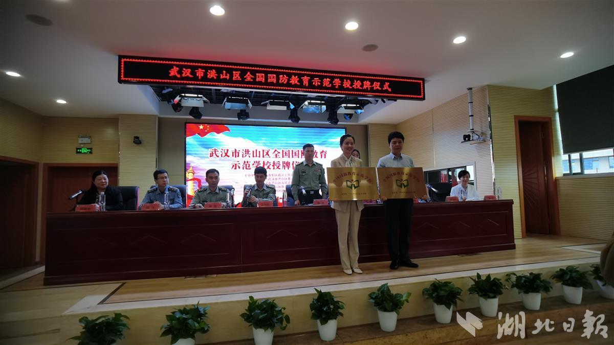 湖北日报讯(记者张倩倩、通讯员刘佳兆、闫晗)5月10日上午,武汉市洪山区举行“全国国防教育示范学校”授牌仪式,洪山区武珞路小学、武珞路小学金地分校2所学校获此殊荣。