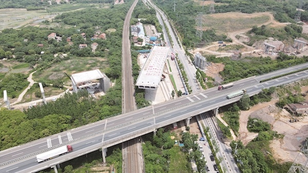 武汉绕城高速中洲至北湖段改扩建跨武九铁路转体桥工程,由湖北交投集团投资建设、中铁十一局承担施工。该转体桥长130米,重1.4万余吨,是京港澳改扩建武汉绕城高速中洲至北湖段重要控制性工程,大桥紧邻武汉绕城高速跨铁立交桥,跨越武九铁路和森林大道,下穿220千伏高压线,施工难度大。