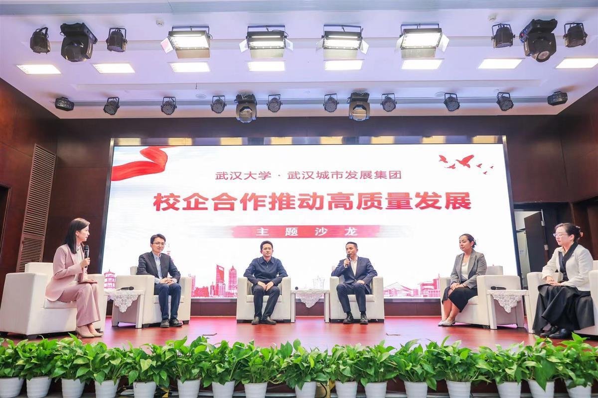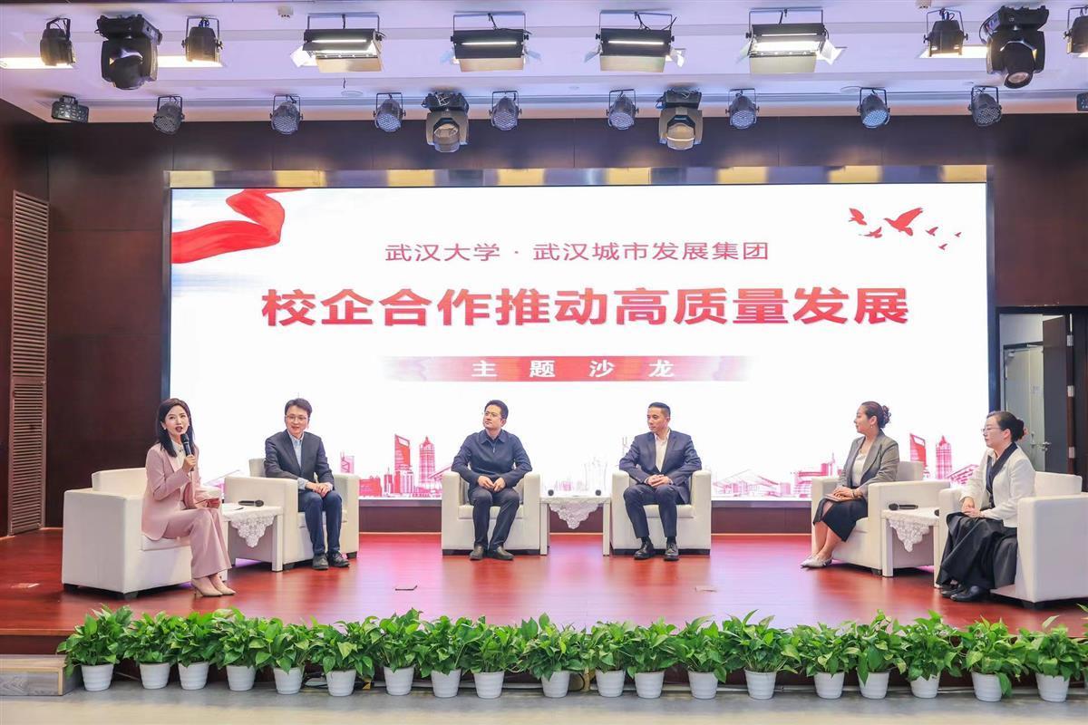 授牌仪式后,校企合作推动高质量发展主题沙龙活动精彩开幕。武汉大学马克思主义学院教授周绍东、资源与环境学院教授陈奕云、法学院副研究员翟晗,武汉城市发展集团党委副书记、董事朱俊华,所属道排公司党委书记、董事长温荣幸,分别围绕城市综合运用模式、环境综合治理、企业法务制度建设、国企干部职工思想政治工作、国企人才队伍建设需求等与城市建设、企业发展紧密相关的热点课题“面对面”访谈交流。沙龙活动由武汉广播电视台资深节目主持人尹晨芳主持。