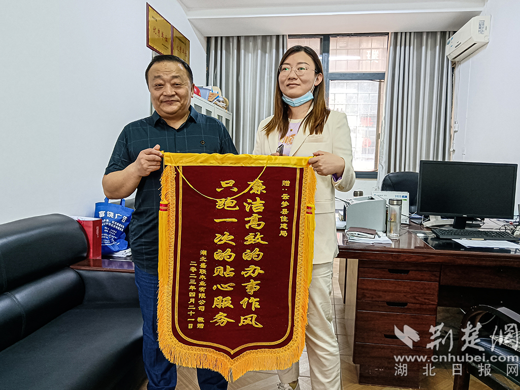 荆楚网(湖北日报网)讯(通讯员李明埜、周胜华、黄星)近日,云梦县住建局收到了湖北盛联木业有限公司负责人送来的 “廉洁高效的办事作风,只跑一次的贴心服务” 锦旗。据了解,湖北盛联木业有限公司在申请办理年产22万平方米复合地板项目施工许可过程中,县住建局主动提供服务,当天即办理了施工许可证书。