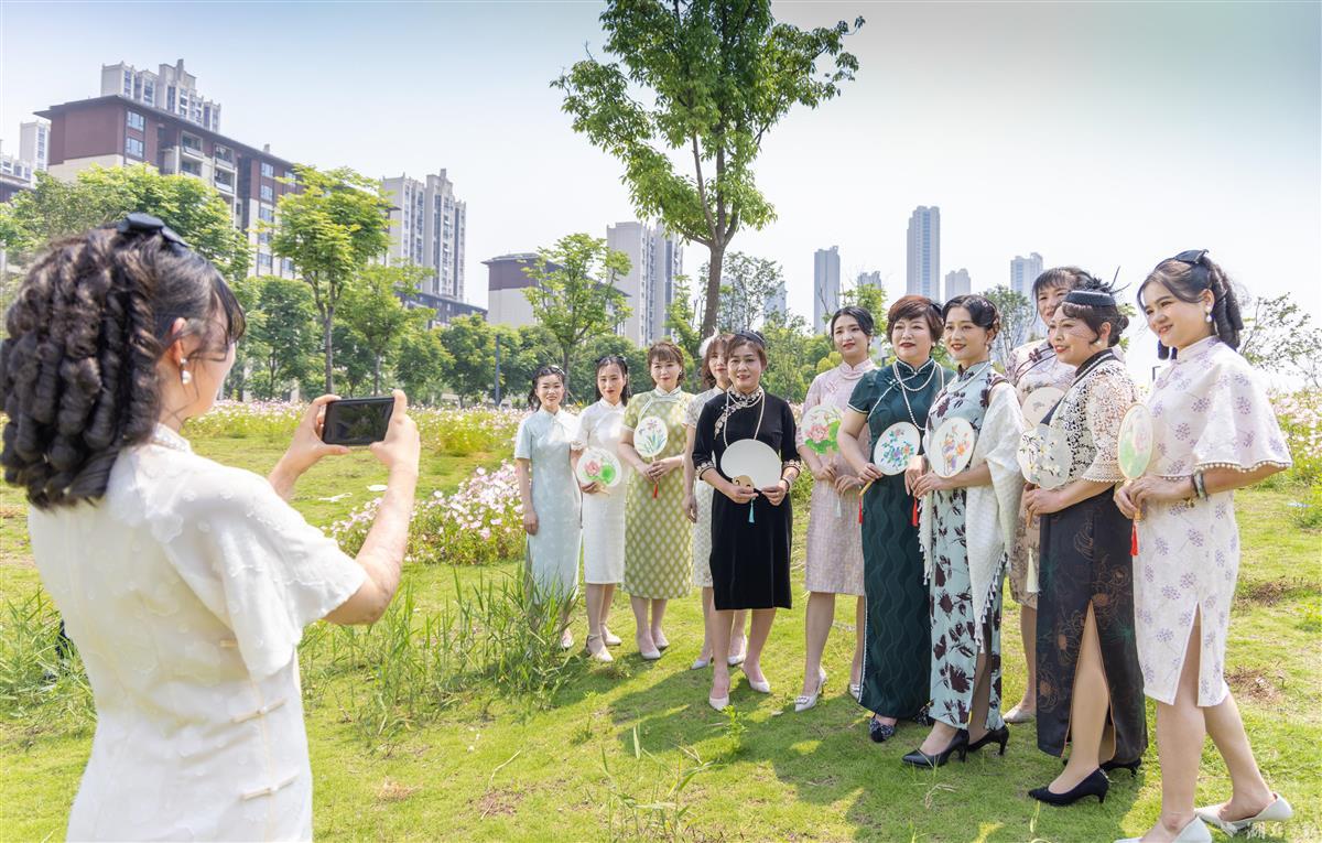 当天,中建三局总承包公司湖北公司组织女性建设者开展“工地母亲蝶变芳华”母亲节庆祝活动。这些平日里坚守在重大工程施工现场的女建设者们,换下工装身穿旗袍,绘团扇、赏花景、拍写真,在光影闪烁间记录正盛芳华。