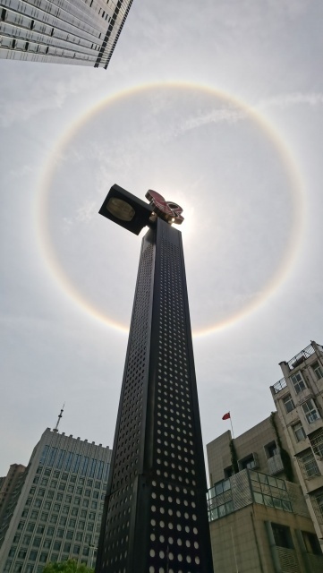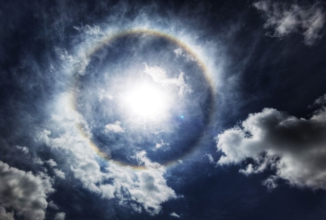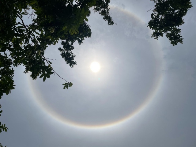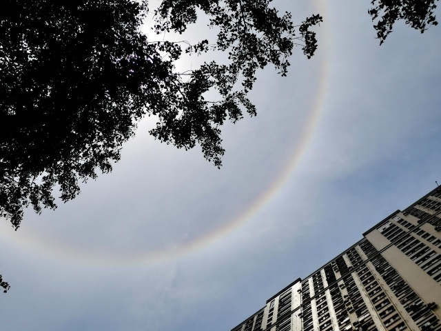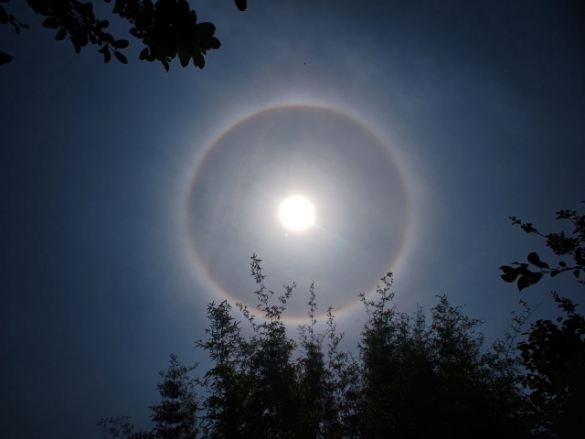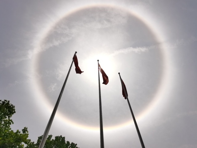 日晕多出现于春夏季节,民间有“日晕三更雨,月晕午时风”的谚语,看到太阳被这斑斓的光晕围绕,真是壮观!