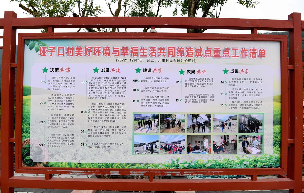 近年来,店垭镇垭子口村深入践行“五共”理念,聚焦群众所需,倾听群众呼声,尊重群众意愿,充分发动群众,以群众房前屋后的小事、实事为切入点,统筹各方资源和力量,高标准建设“茗香垭子口·幸福新家园”,村庄面貌焕然一新。