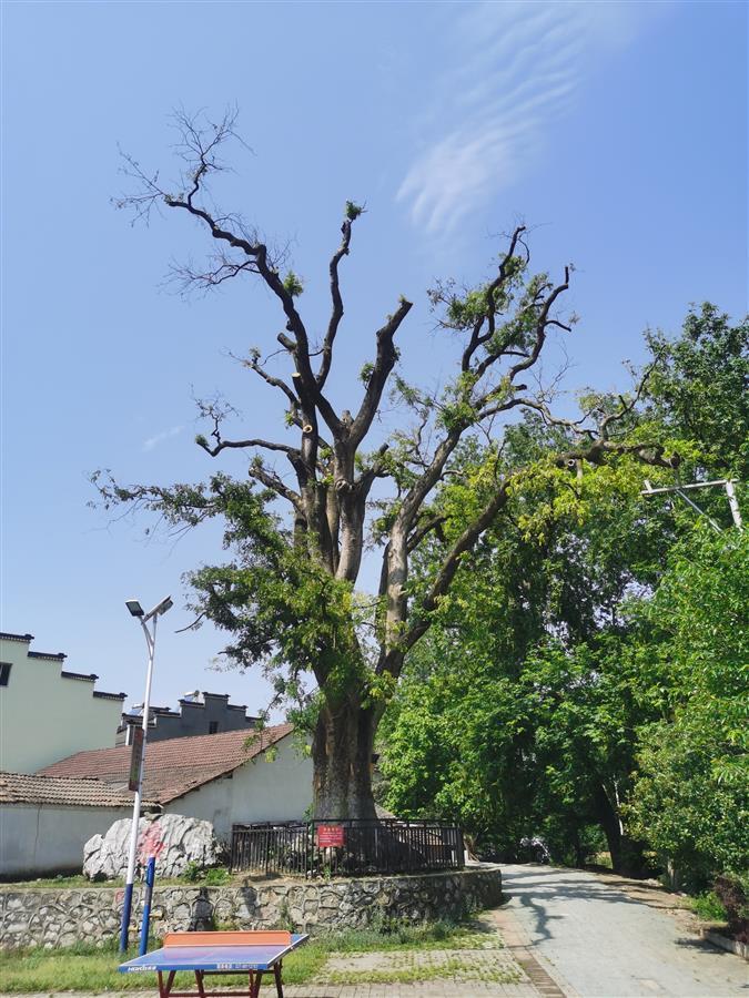 5月11日,湖北日报全媒记者走进仙居社区,一睹古树风采。远望,古树五六层楼高,枝干发达,枝叶较少,如同少了羽毛的孔雀开屏。近看,古树巍然矗立,至少三人合抱。