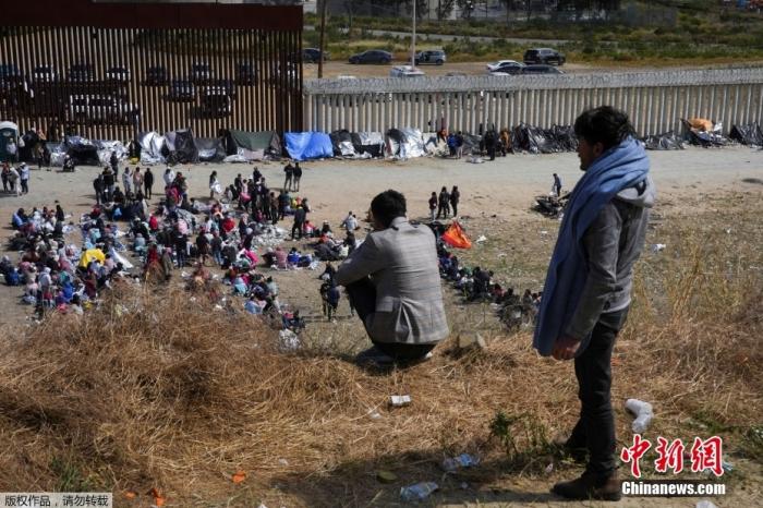 资料图:当地时间5月11日,墨西哥蒂华纳,移民聚集在美墨边境。