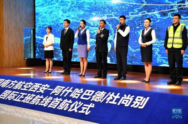 5月13日,西安-阿什哈巴德/杜尚别国际正班航线首航仪式在西安举行。