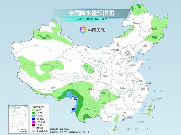 具体来看,今天,东北地区北部和东部、山东东部、华南沿海、云南大部、西藏东部、新疆北部等地部分地区有小到中雨,其中,广东西南部沿海、云南西部和南部、西藏东南部等地部分地区有大雨,云南西北部局地暴雨。