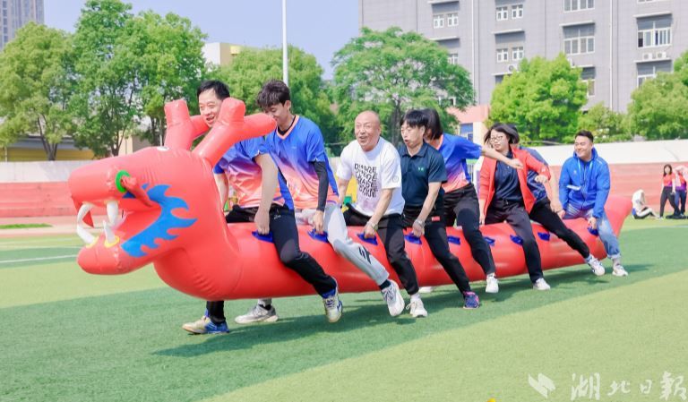 此次运动会除传统项目外,还设有踢毽子、平板支撑、足球九宫格射门、投掷飞镖4个个人趣味赛项目以及集体拔河、集体跳绳、旱地龙舟、龟兔赛跑4个团体趣味赛项目。在传统比赛项目中,运动员们在比赛中拼尽全力、突破自我;在趣味比赛项目中,运动员们在欢声笑语中团结一致、拼搏向前。同时他们“为家乡而战”,让体育之光在赛场精彩绽放。