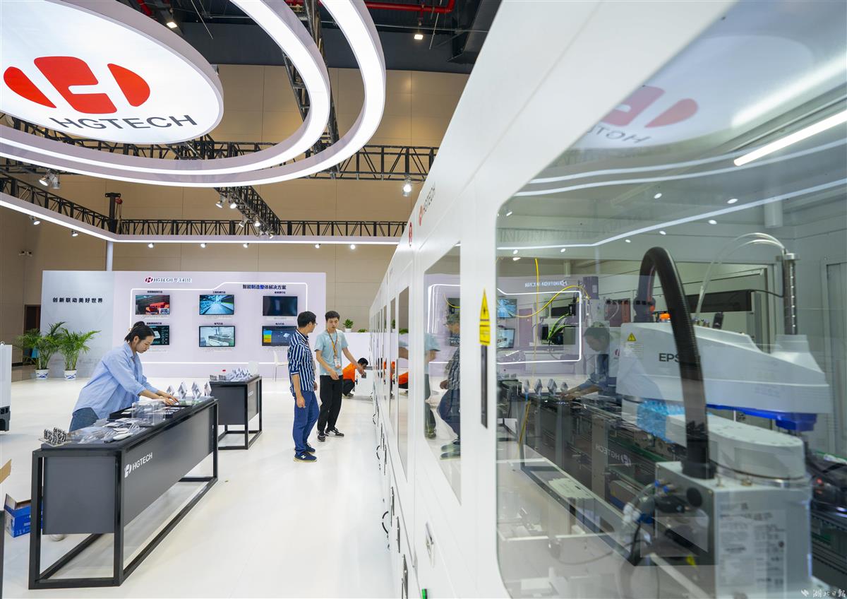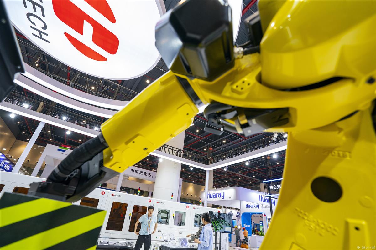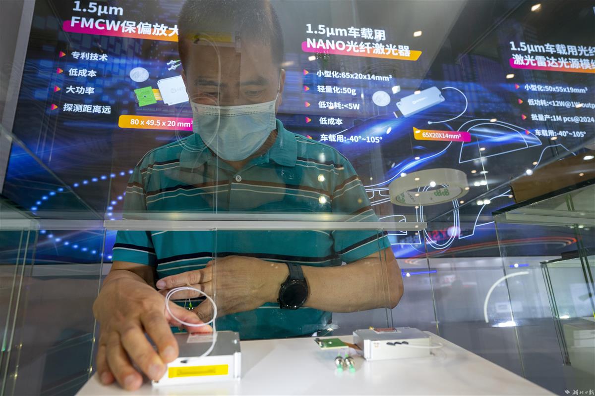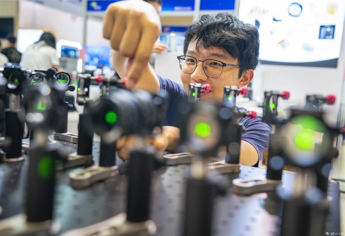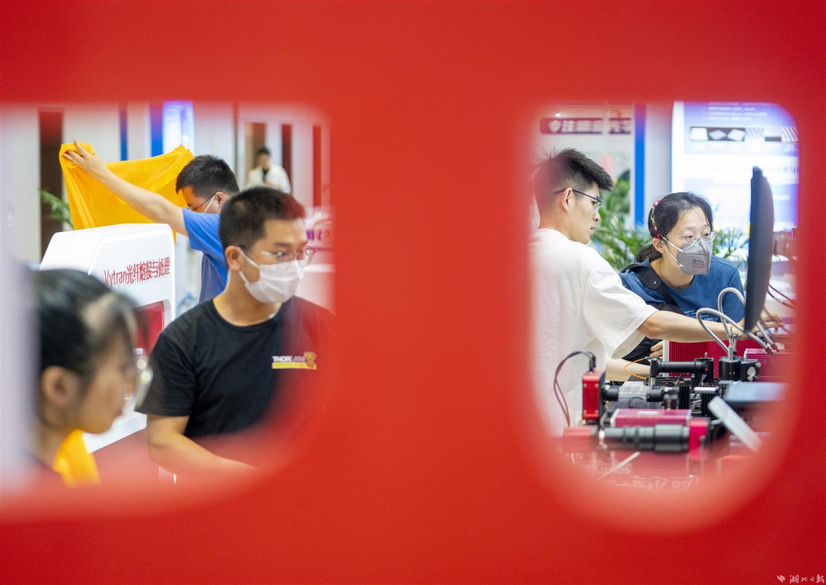 第十九届“中国光谷”国际光电子博览会暨论坛(以下简称光博会)定于5月16日-18日在武汉举行。此次展区面积20000平方米,规划4大主题展区、6个展馆。本届武汉光博会以“光联万物智引未来”为主题,2002年举办至今已成功举办了18届,累计吸引全球30多个国家和地区的5700余家知名企业参展,近56万专业观众参观,同期举办300余场专业论坛。(湖北日报全媒记者 魏铼 实习生 李铭基 摄)