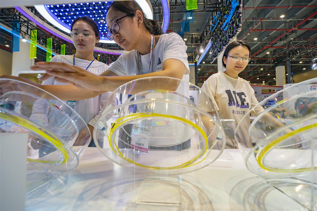 15日下午,极目新闻记者提前探馆看到,西门子、日本滨松光子、华为、华工科技、中国信科、长飞光纤等业内知名企业基本完成布展,部分用于观众体验的展品也经过了反复调试,准备以最好的状态迎接观众。所有参展企业将展示和发布上百项国际国内先进技术、产品,集中亮相一批全球光电领域最新、最前沿的技术创新成果。