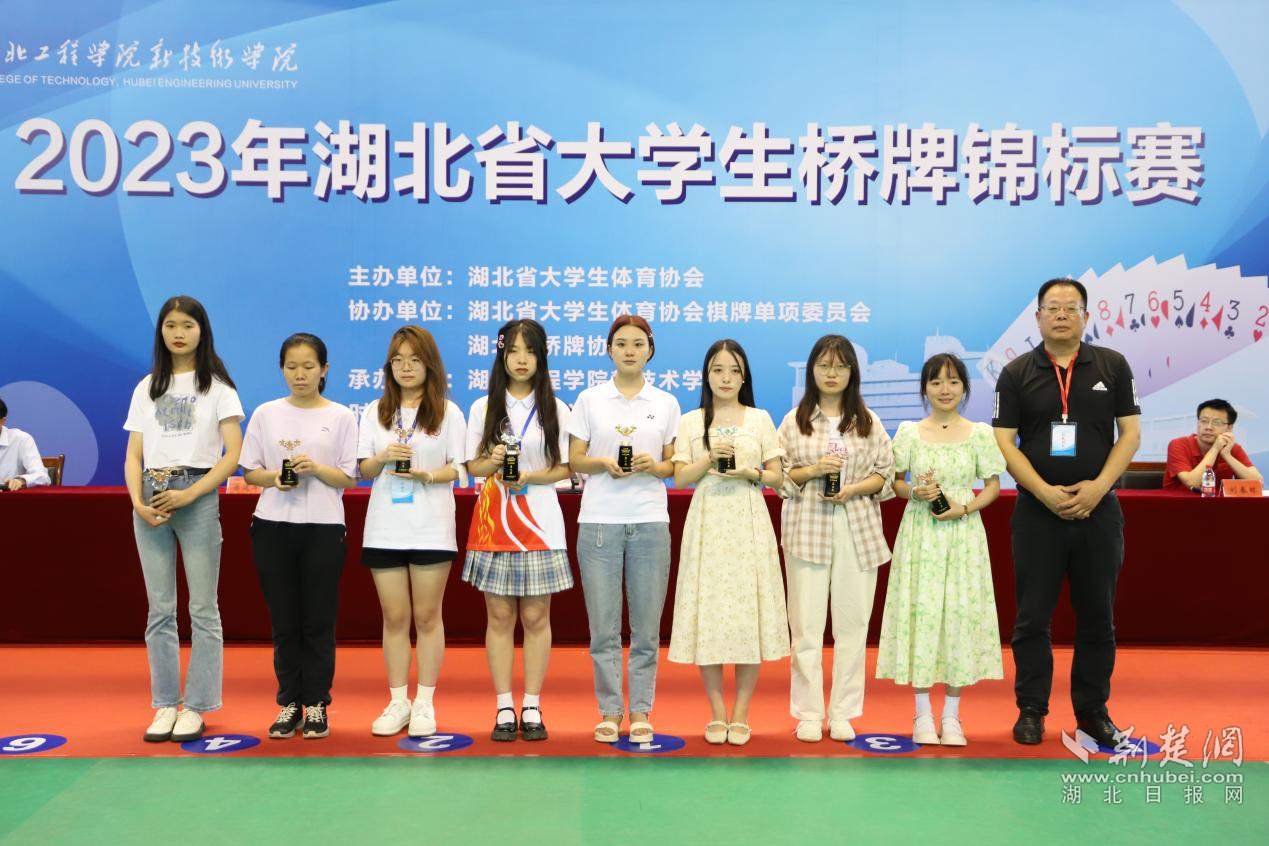 湖北省大学生体育协会副秘书长、棋牌单项委员会副主任乐建军为女子团体赛颁奖。通讯员 供图