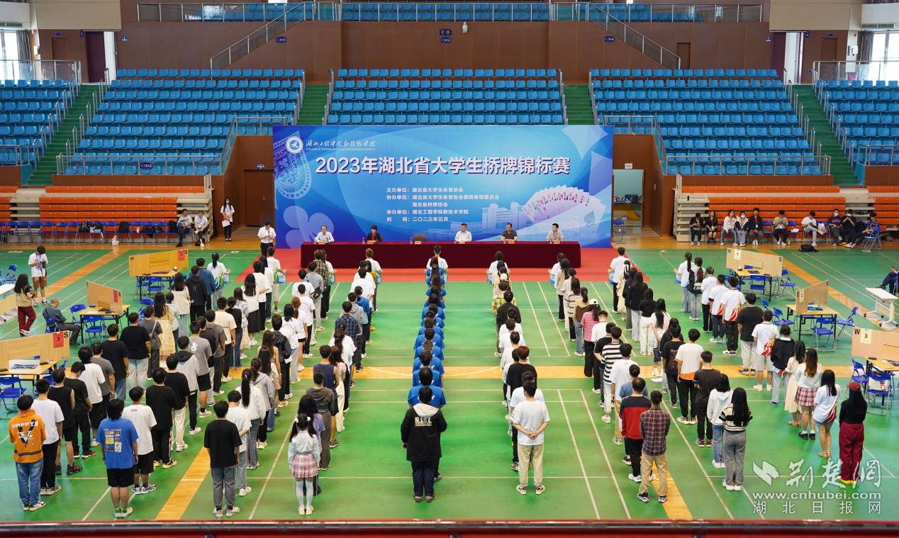荆楚网(湖北日报网)讯(通讯员魏琦滟 谭雪玲)5月12日-14日,由湖北省大学生体育协会主办,湖北省大学生体育协会棋牌单项委员会、湖北省桥牌协会协办,湖北工程学院新技术学院承办的2023年湖北省大学生桥牌锦标赛在湛林体育馆举行。共有来自武汉大学、华中科技大学、华中农业大学、武汉工程大学等高校的100余名运动员参加比赛。