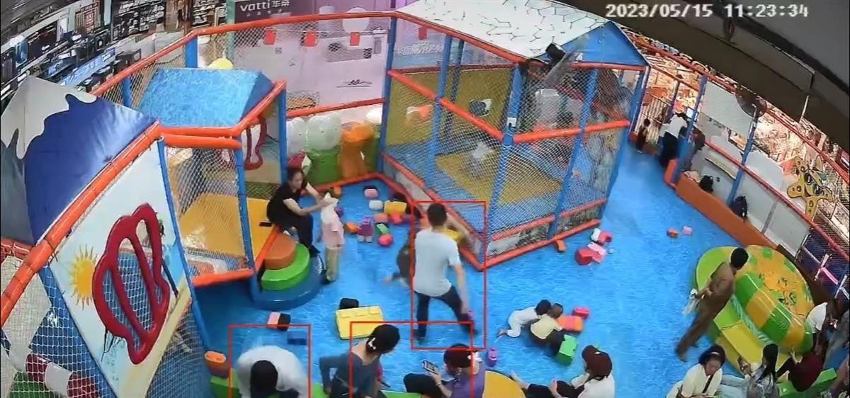 监控视频显示,15日上午,儿童游乐区内,孩子(甲)不慎跌倒,身后的男子见状,怒推从中间穿过的另一名孩子(乙),连续猛推几次后,又将孩子(乙)举起来摔在地上。这时一名女子匆忙赶来,指着摔在地上的孩子(乙)和男子起了争执。