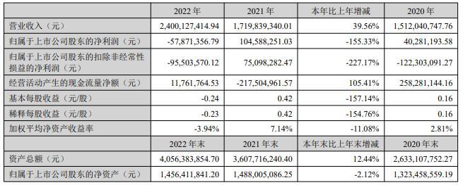 科大国创2022年年度报告显示,2022年,科大国创实现营业收入24.00亿元,同比增长39.56%;归属于上市公司股东的净利润-5787.14万元,同比下滑155.33%;归属于上市公司股东的扣除非经常性损益的净利润-9550.36万元,同比下滑227.17%;经营活动产生的现金流量净额1176.18万元,同比增长105.41%。