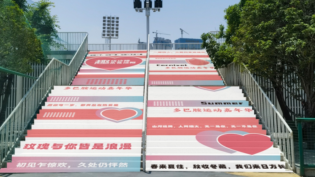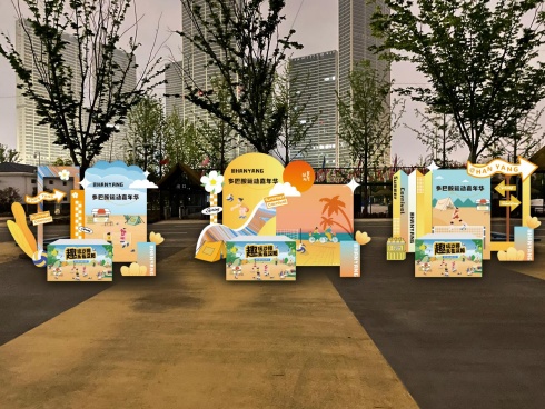 除此之外,以运动为主题,辅以文旅、婚恋元素,还设有“当夏有趣市”(市集美食区)、“城市露营地”(交友交流区)、“多巴胺舞台”(舞台演艺区)、“元气加油站”(打卡美陈区)等主题区域。
