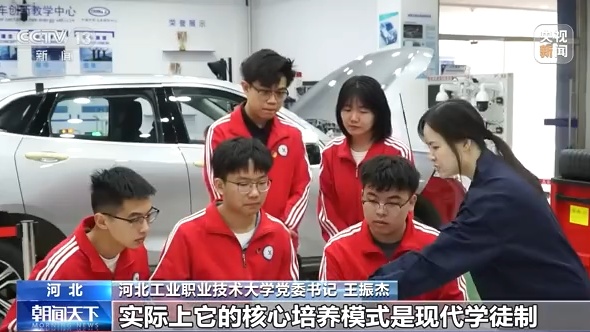 河北工业职业技术大学党委书记 王振杰:对接产业高端和高端产业,现场工程师要会制定生产技术方案,解决生产过程中复杂的问题,包括有一定的技术创新能力。实际上它的核心培养模式是现代学徒制,人才培养方案一定是企业和学校来联合制定,尤其是它的教学内容,一定是企业典型的真实的生产任务。