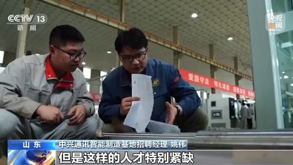 中兴通讯智能制造基地招聘经理 姚伟:我们想招现代通信技术专业的现场工程师。比如,在我们的制造岗位中,他既能根据材料、尺寸制定焊接方案,又可以参与生产线设计,负责现场设备运维,还能够统筹协调各岗位工作,能现场解决这些复杂问题。这样的人才特别紧缺,挺难招到的。