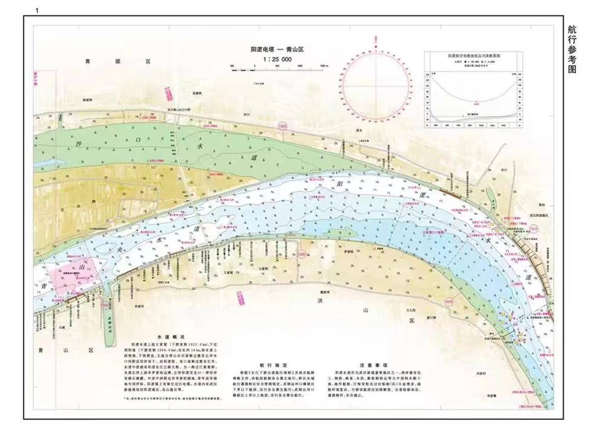 据介绍,本版航行图在编印过程中采取了多项创新技术:在地图样式上,陆域部分叠加遥感影像作背景,适当羽化,丰富图集的表现形式;在制图技术上,采用图库一体化制图技术,完全面向GIS和空间数据库,后续更新更便捷;在符号表达上,通过骨架线符号化各类地物,达到入库和出图的统一;在制图算法上,设计算法智能提取水深点,实现更高效的制图方式。值得一提的是,2023版航行参考图更新2015年以来的航路变化情况,以及新建、变化的桥梁、码头、整治建筑物等水工建筑物,全貌展示当前长江中游航道地理信息,进一步规范图上地物的色彩和符号,地图表达更清晰、更简单,同时新增了船舶报告线、停泊区等助航信息,为航运安全多增添一份保障。