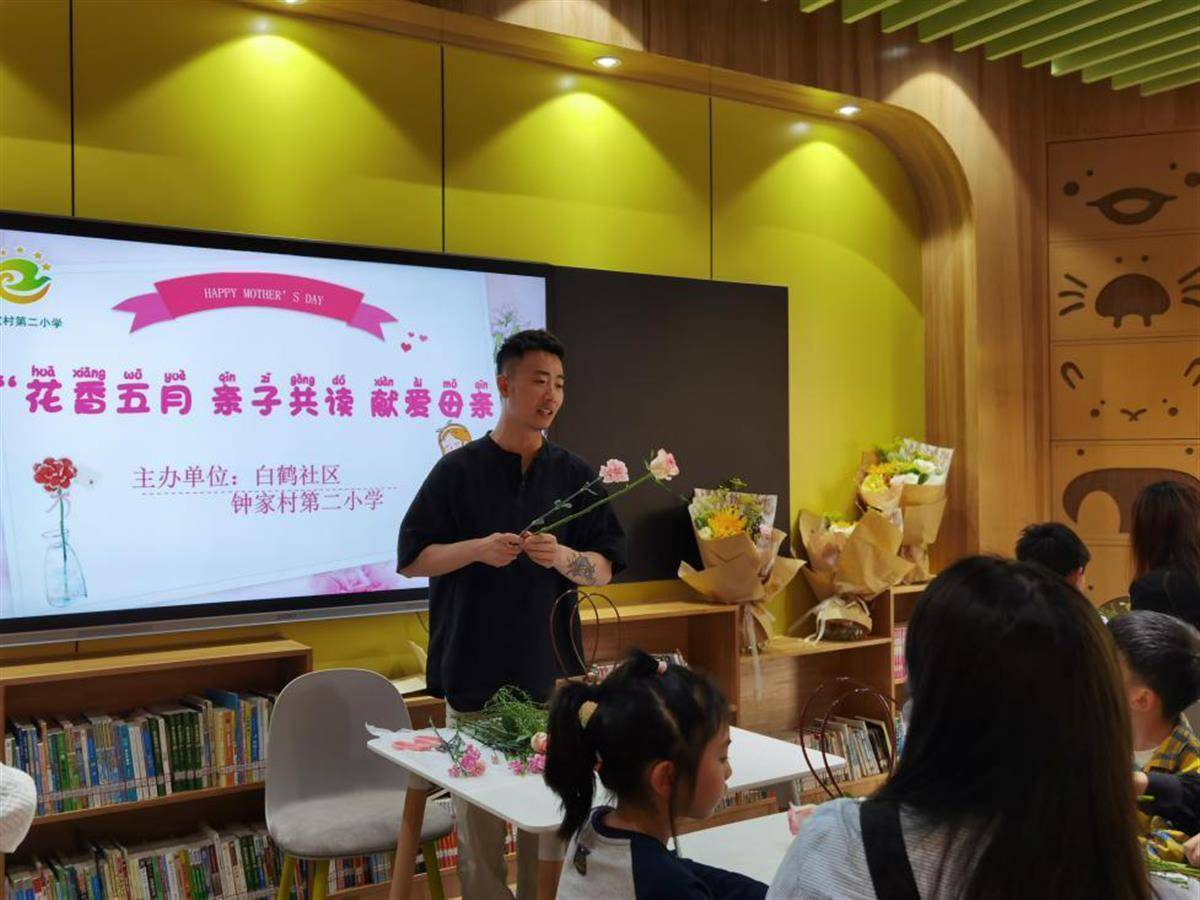 湖北日报讯 (通讯员周国艳、王璐)5月12日,武汉市汉阳区钟家村第二小学联合白鹤社区开展“献爱母亲节”花艺沙龙及“亲子阅读家”活动,引导学生感恩父母、珍视亲情,同时倡导家长们多陪伴孩子,参与孩子生命成长的过程。