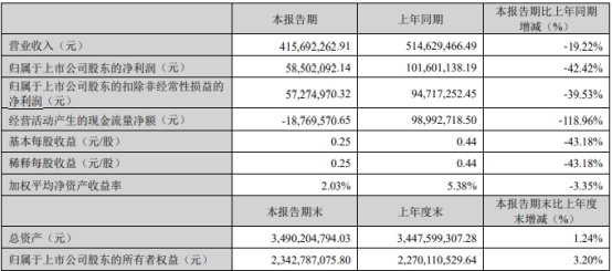 富瀚微2023年第一季度营业收入为4.16亿元,同比下降19.22%;归属于上市公司股东的净利润为5850.21万元,同比下降42.42%;归属于上市公司股东的扣除非经常性损益的净利润为5727.50万元,同比下降39.53%;经营活动产生的现金流量净额为-1876.96万元,同比下降118.96%。