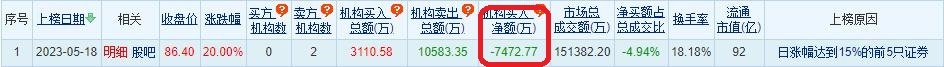 龙虎榜数据显示,卖出冰川网络金额最大的前五名中,有2家机构专用席位。经统计,冰川网络今日的机构席位净卖出金额为7472.77万元。
