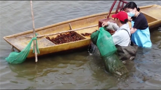 5月,正值小龙虾销售的高峰期,养殖户许仙乘着小船划进了自家虾田,只见他提起沉在水里的虾笼,一抖一甩,一只只个头饱满、色泽鲜亮的小龙虾就滚落入筐内。这批小龙虾,一部分将打包装车,发往白沙洲大市场,另一部分则会直接送上当地农家乐的餐桌。