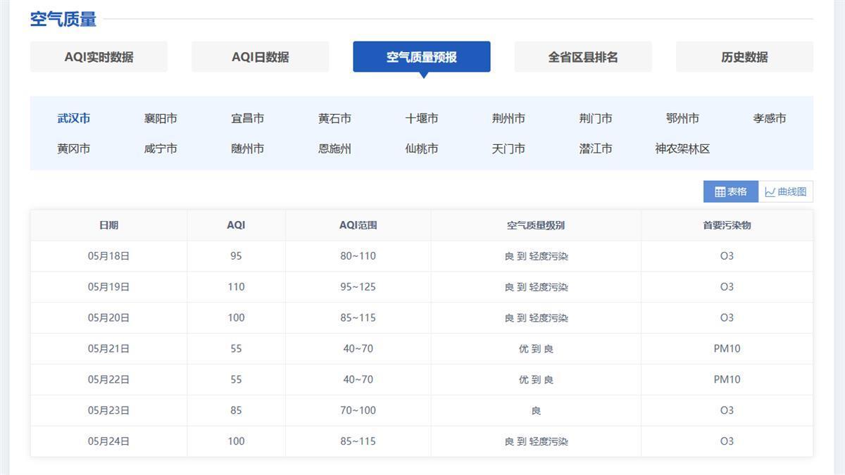 5月18日至24日武汉空气质量预报(来源:省生态环境厅官网)