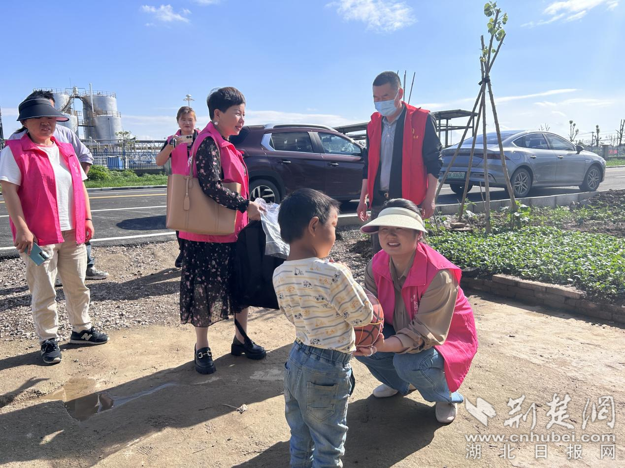 “颜子浩,还记不记得阿姨啊?送你一个篮球好不好?”志愿者来到日月湖社区前进湾3组困难儿童颜子浩家,牵着小朋友的手,引导孩子主动交流。