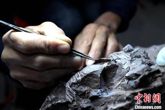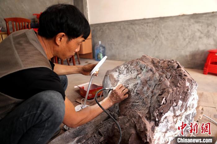专业人员在修复恐龙蛋化石。 上杭县融媒体中心供图