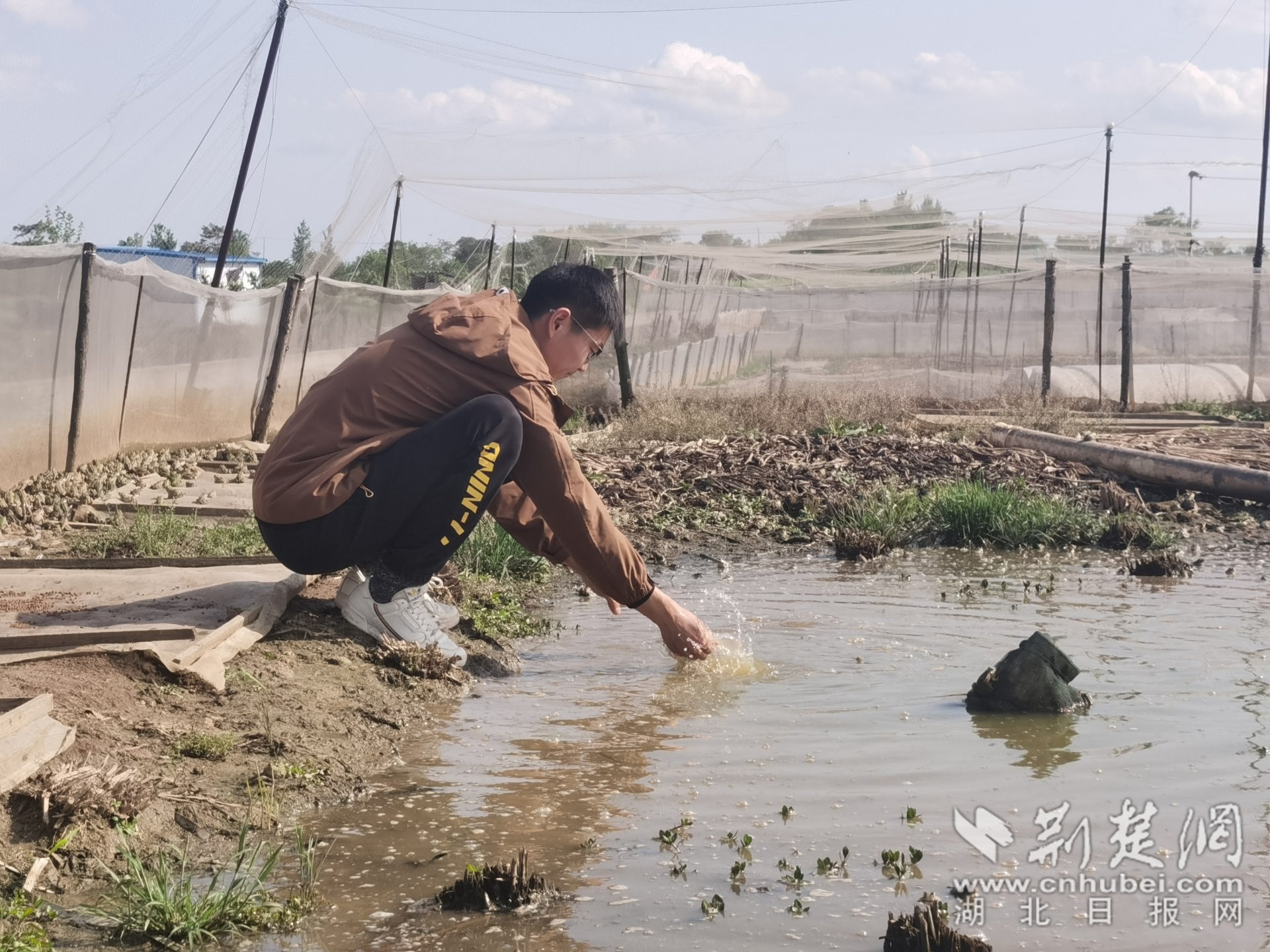 荆楚网(湖北日报网)讯(通讯员王君翊 夏洋洋)时近六月,在云梦县倒店乡陆洼村春田稻蛙养殖基地,陆凯正清算一笔订单的青蛙数量,尽管汗水打湿了衣服,但脸上的笑容不止。堤坝上,一块块稻田四周围起了白色的纱帐,脚步一靠近,“扑通”声奏响,一只只青蛙慌忙跳进水中,听取蛙声一片。这是村里五个合作社之一,也是唯一一个由大学生返乡创业的建立的合作社。
