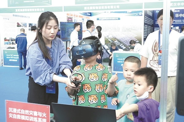 湖北省消防救援总队和鄂州市消防救援支队的展台前,市民朋友戴上VR眼镜、手持操控手柄体验“沉浸式自然灾害与火灾自救模拟训练体验系统”。在电动车火灾求生体验项目,体验者的VR眼镜中显示楼栋6层电动车起火,紧随其后的是自救训练。“大家体验时能直观感受火灾时的场景,如火焰、烟雾等,并通过交互的形式来学习自救知识。”应急管理部天津消防研究所姜芊叶介绍,这项成果可广泛应用于社会化应急消防安全科普教育工作中。