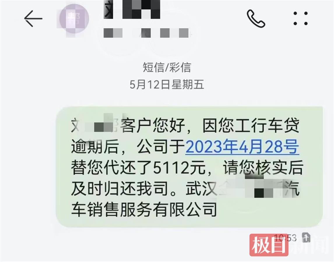 虽然逾期了十多天,但自认为已将拖欠的月供还清了,刘某便没再把此事放在心上。哪知,5月12日,他突然收到一个陌生号码发来的短信,对方称其分期付款已逾期,武汉一家汽车销售公司在4月28日替刘某代还了5112元的贷款(其中326元系担保公司每月所收手续费),要求刘某核实后及时归还。